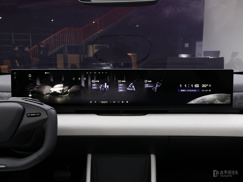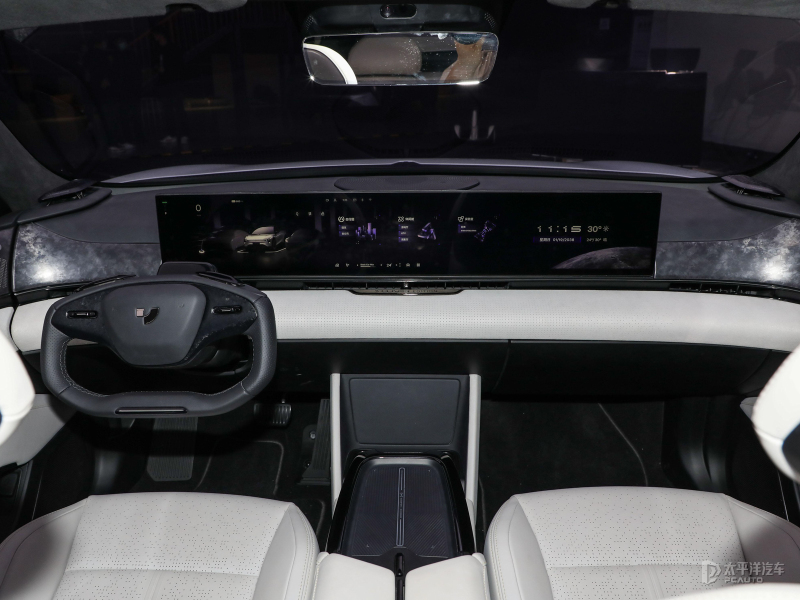 内饰方面,新车以白色为基础,几乎最大还原了概念车的内饰设计,中控采用了35.6英寸3D无界一体化屏幕,U型的异形方向盘在新车上也得以继承,不仅有着更强的未来感,同时也避免了日常对屏幕的遮挡。此外,新车还取消了换挡杆和左右拨杆,预计将会与智能驾驶辅助相结合。座椅采用了包裹感突出的设计,座椅靠背上有探月限定版专属的“LUNAR EDITION”标识。