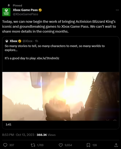 Xbox Game Pass 官方账号也同时在 X 平台声称,微软即将在未来几个月内将动视暴雪系列游戏加入 XGP 服务。
